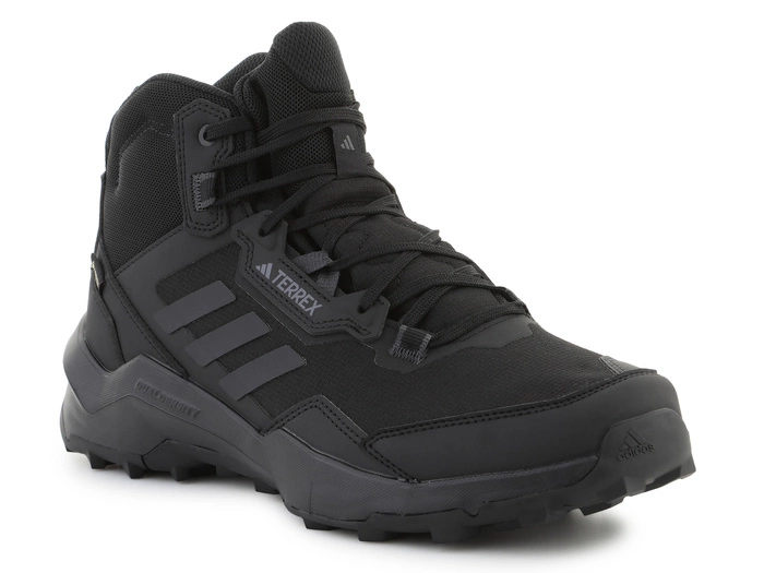 Der Terrex AX4 Mid GORE-TEX ist ein vielseitiger Outdoor-Schuh, der Komfort, Schutz und Vielseitigkeit vereint. Das Mesh-Obermaterial mit synthetischen Verstärkungen ist abriebfest, und der mittelhohe Schnitt mit abgeschlossener Zunge schützt Fuß und Knöchel vor Schmutz und Nässe. Die GORE-TEX® Membran sorgt für Wasserdichtigkeit und Atmungsaktivität — für trockene und komfortable Füße bei Regen oder feuchtem Gelände.