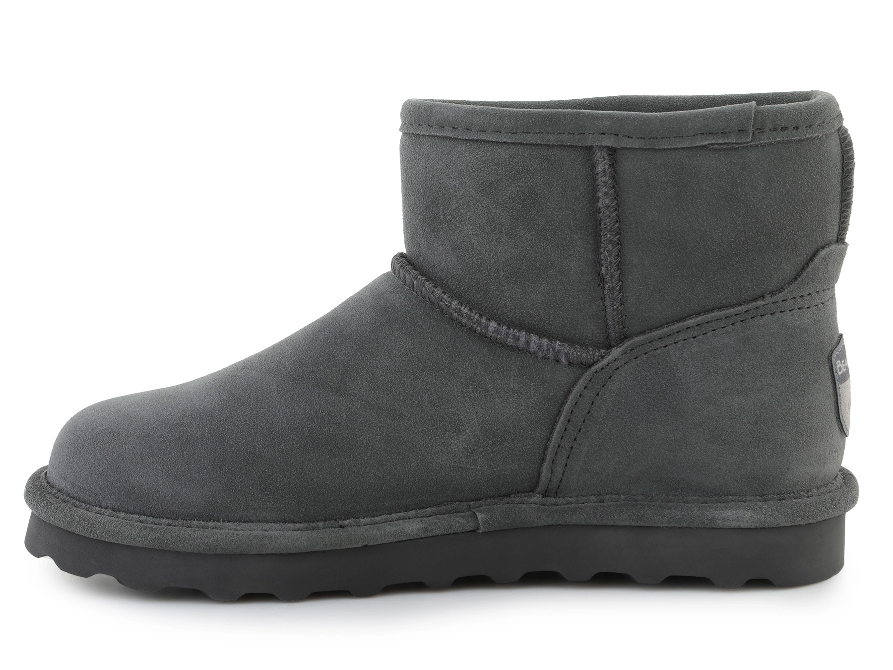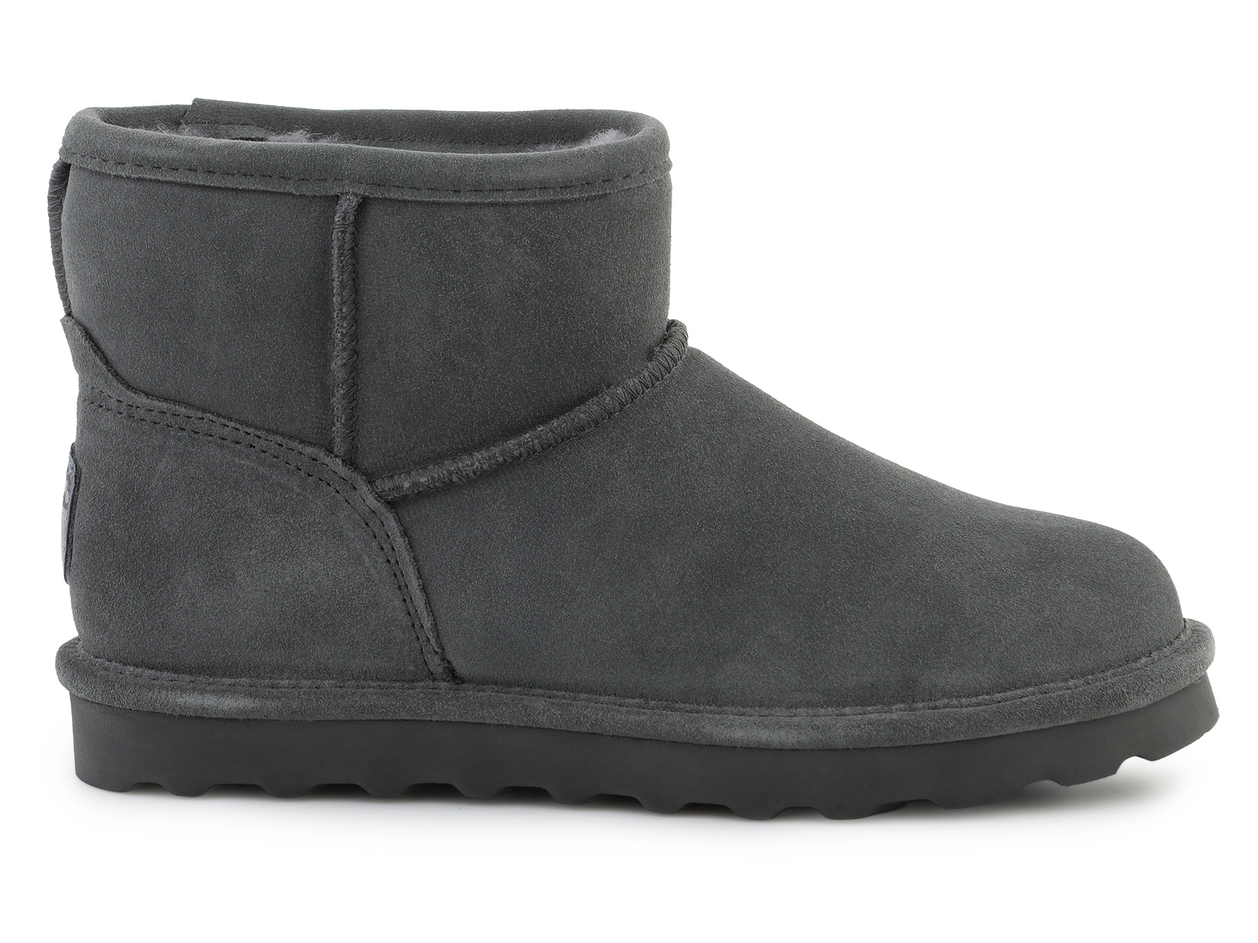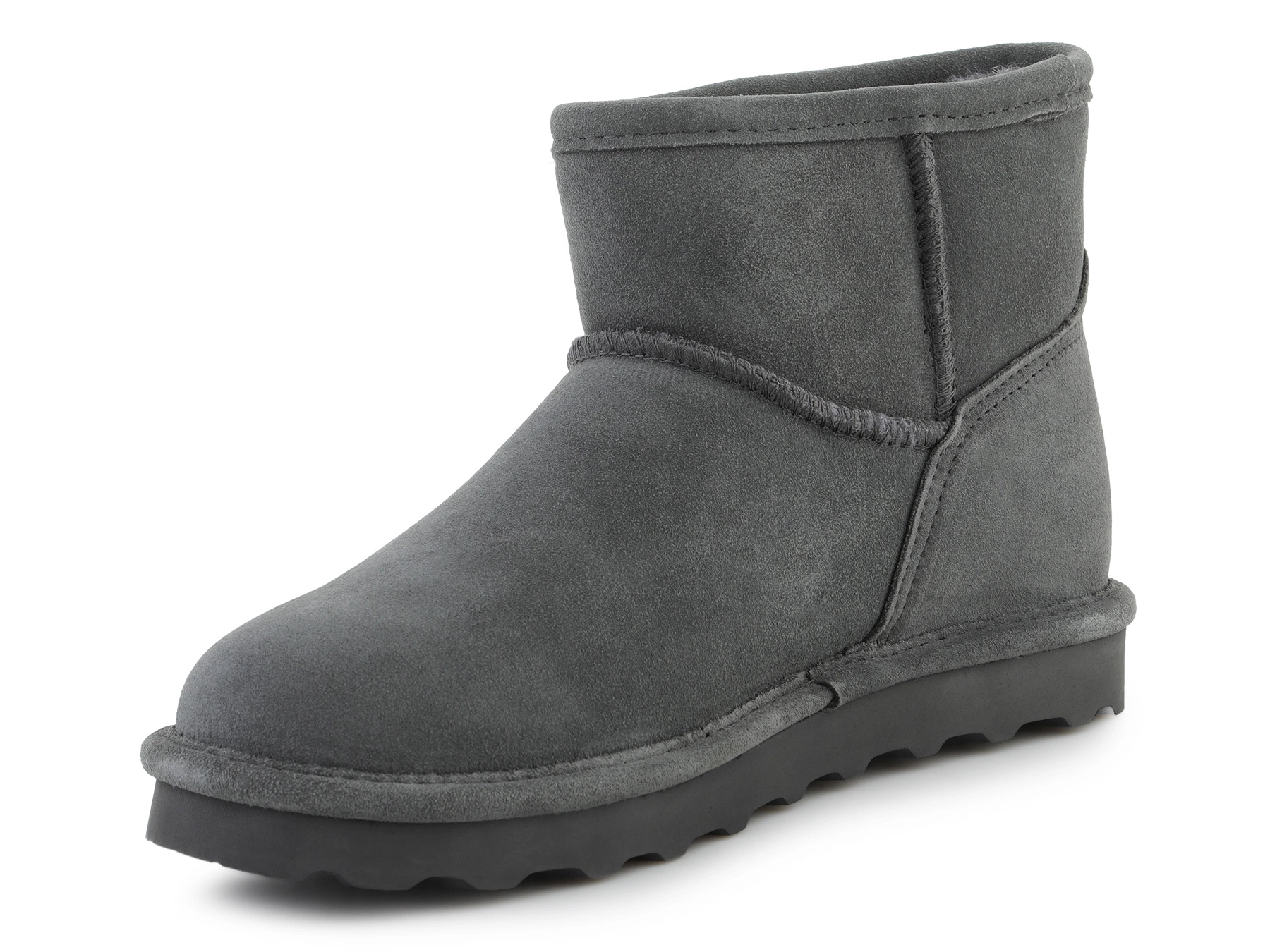 - Damen-Winter-Stiefeletten Bearpaw Alyssa 2130W-071 „Gadget Gray“: Wildleder-Obermaterial, NeverWet-Technologie gegen Feuchtigkeit, weiches Futter aus Lammwolle und Polyester, leichte Schaumsohle mit tiefem Profil.