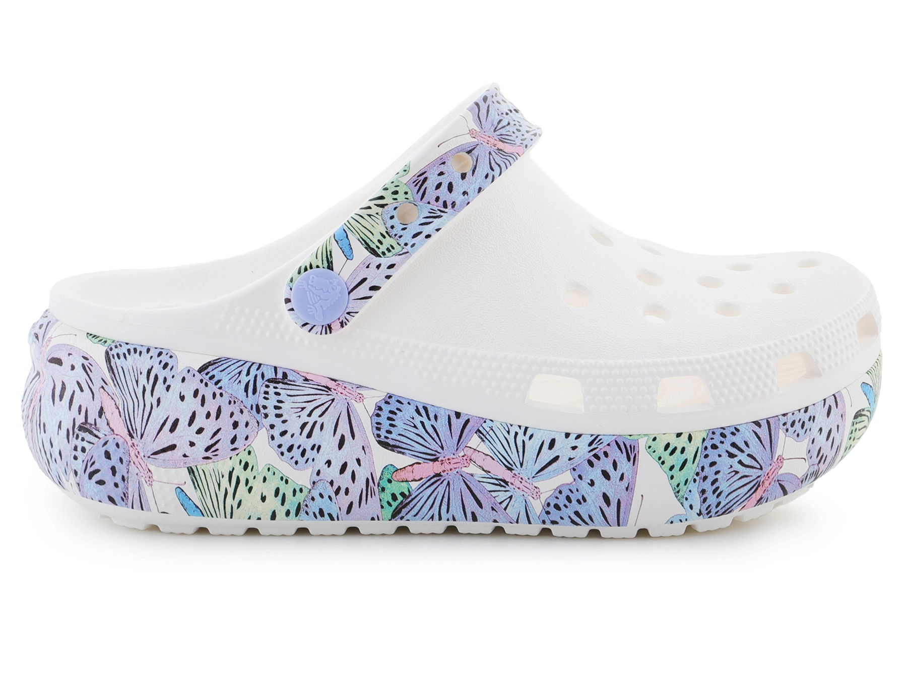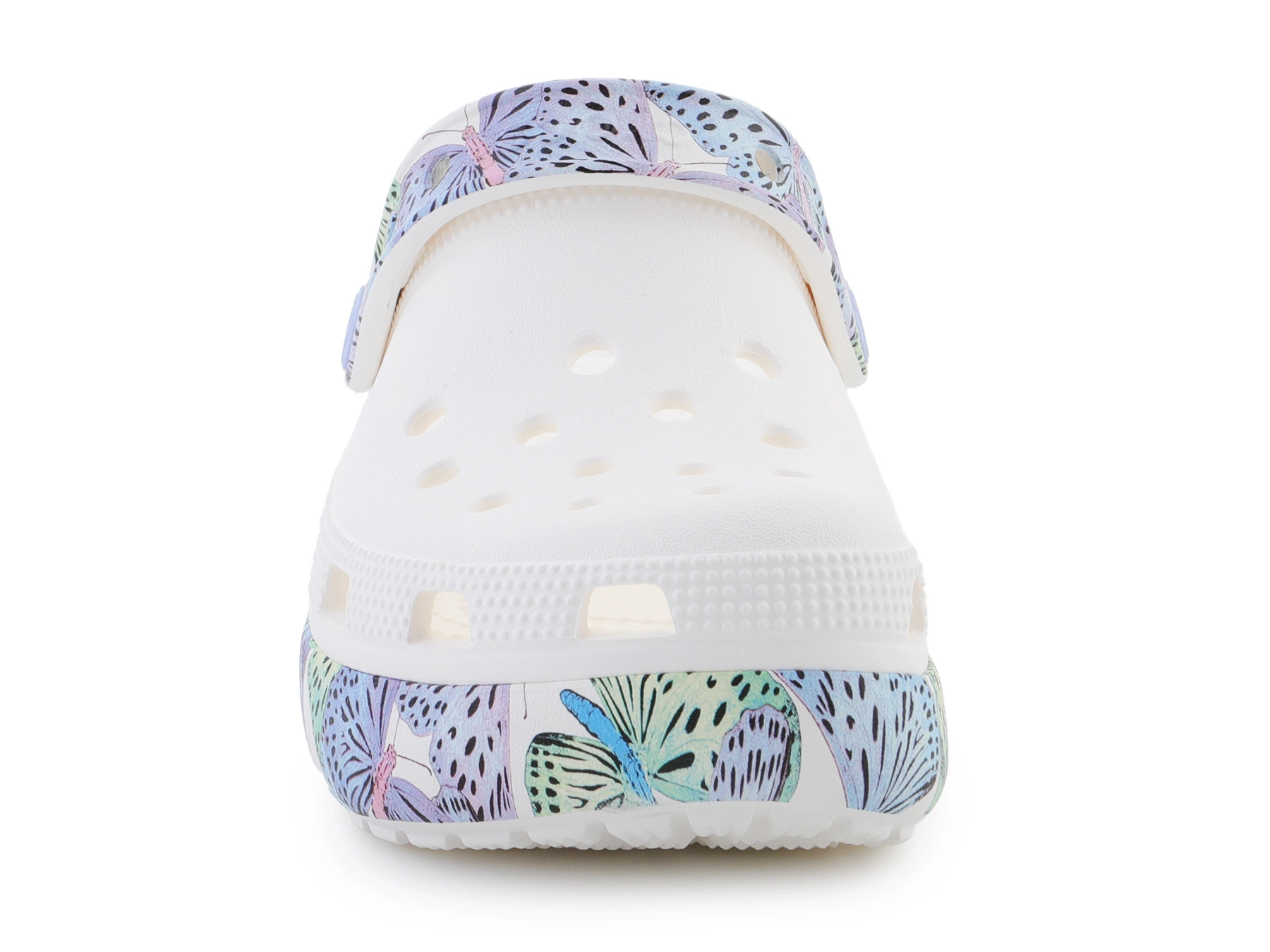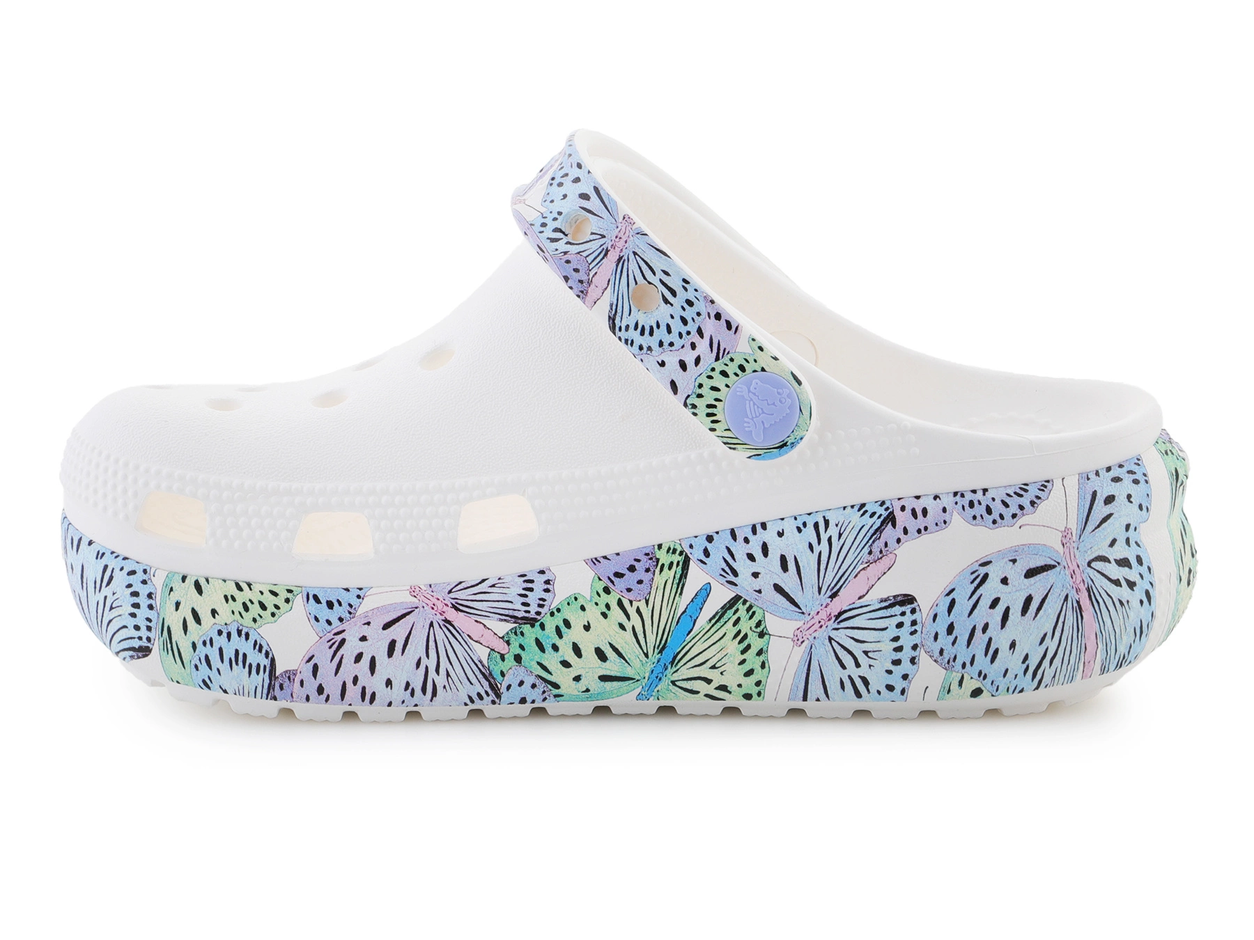 Die Crocs Classic Cutie Butterfly Clog K 208298-94S sind eine verspielte Variante des klassischen Crocs-Modells mit buntem Schmetterlingsdruck und erhöhter Sohle. Hergestellt aus leichtem Croslite™-Material bieten sie ganztägigen Komfort, Belüftungslöcher sorgen für Atmungsaktivität, der Fersenriemen für sicheren Halt. Ideal für Alltag, Kindergarten oder Ausflüge.
