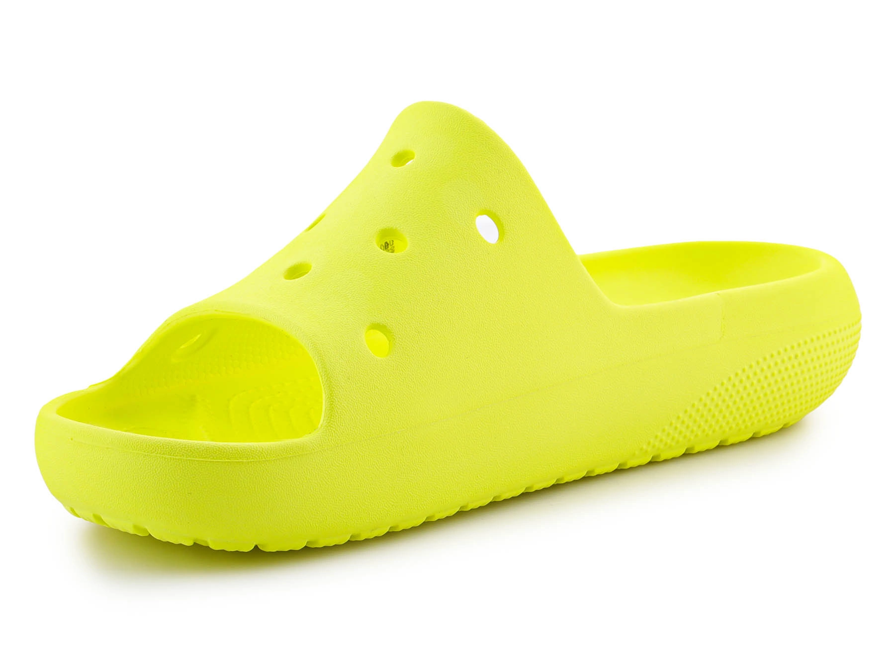 - Crocs Classic Slide V2 209401-76M Acidity are lightweight, comfortable slides in a vibrant yellow tone, perfect for casual summer wear.