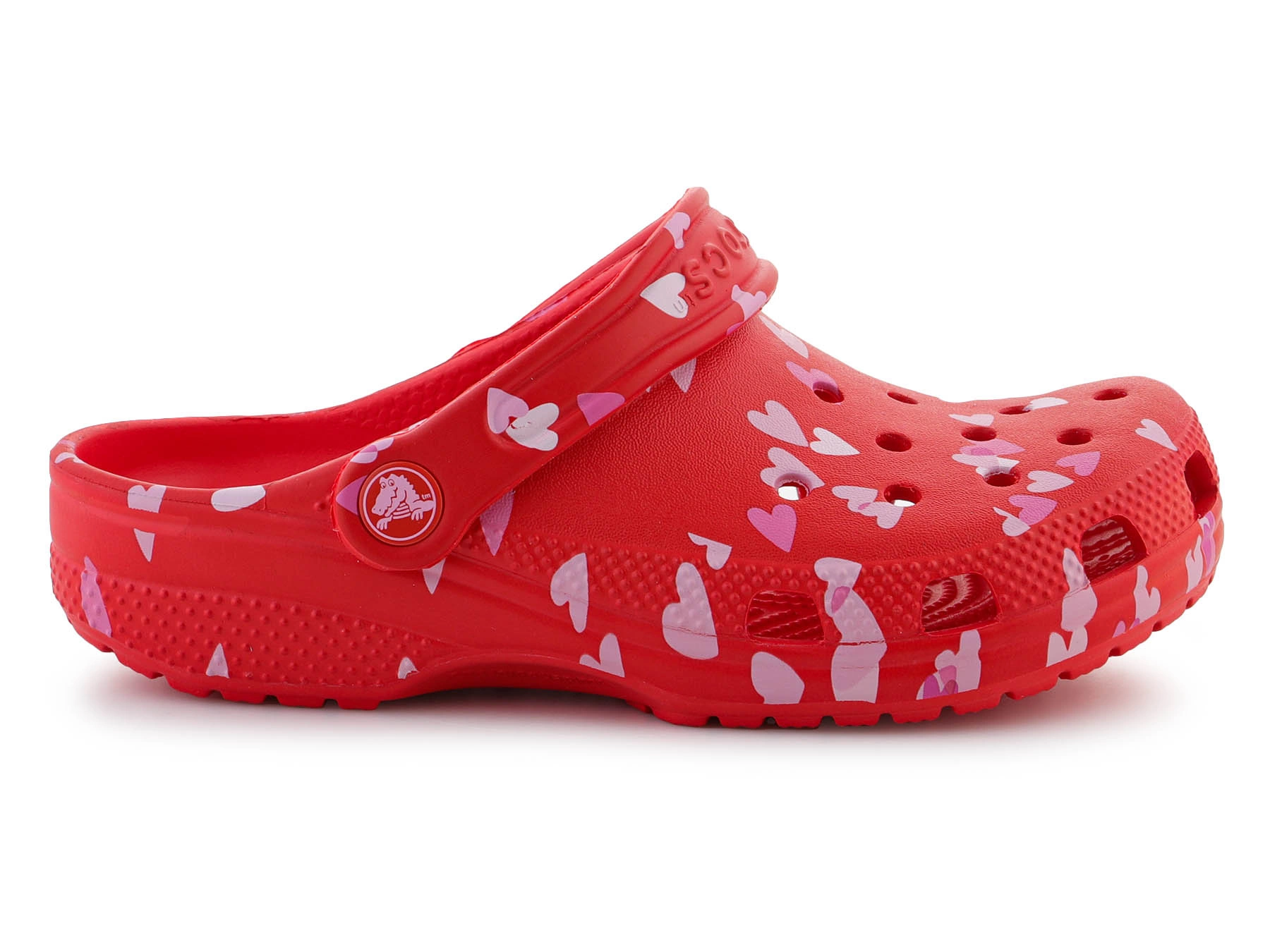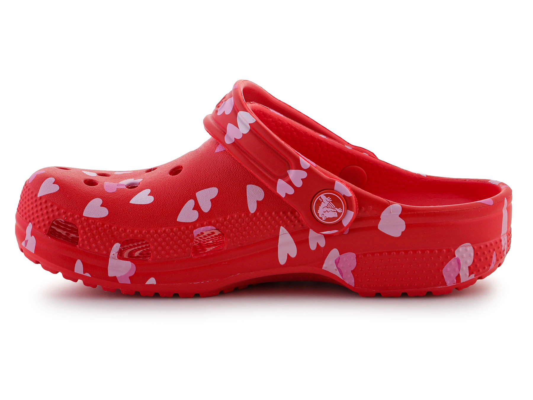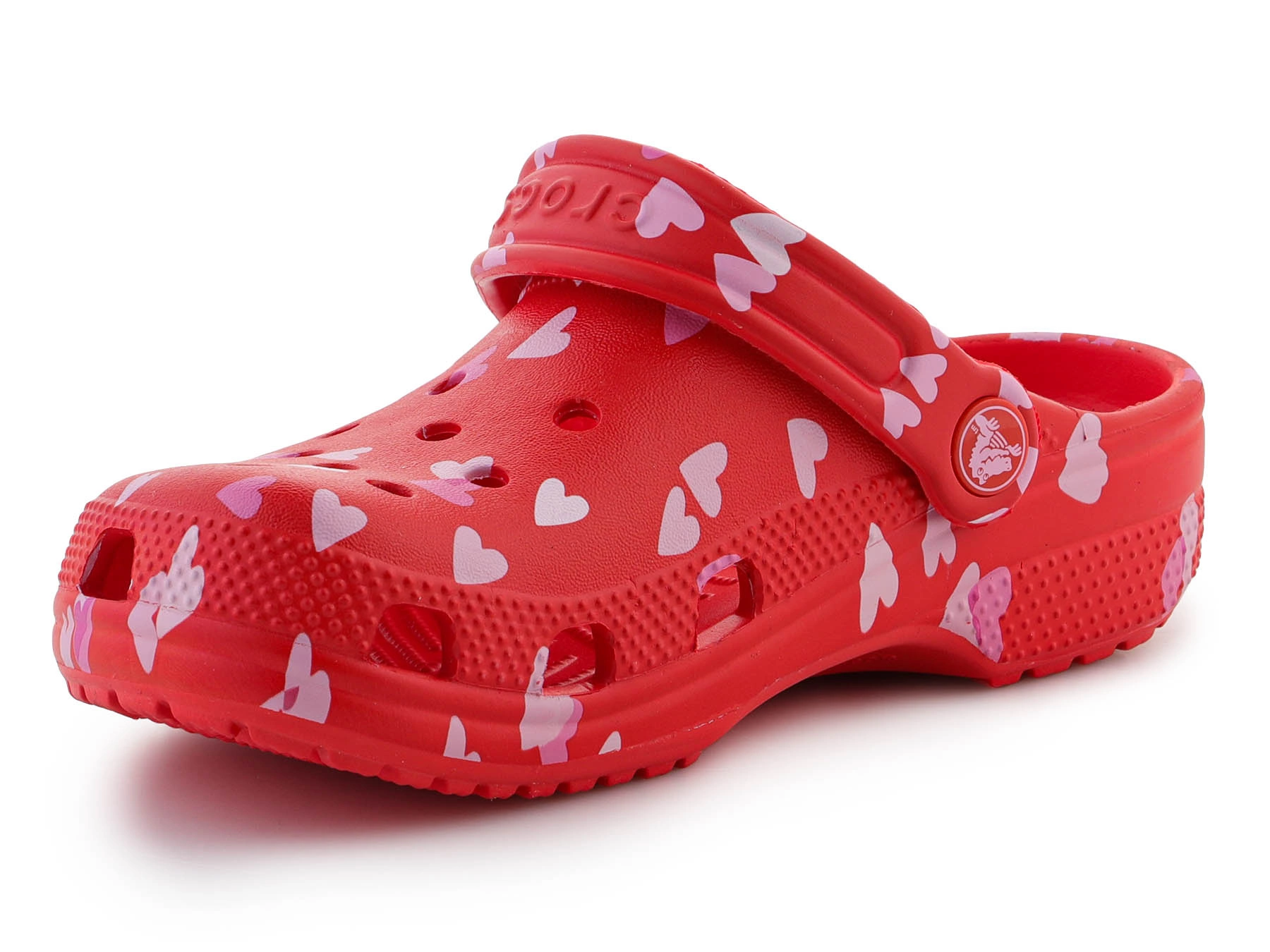 - Crocs Classic Vday Kids Clog 209754-6ZR Cherry Red – Kinderclogs mit Valentinstags-Herz-Lutscher-Design, die Leichtigkeit und Komfort für den Alltag bieten.