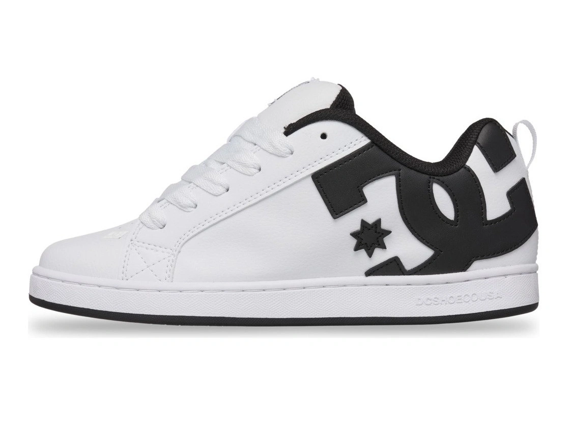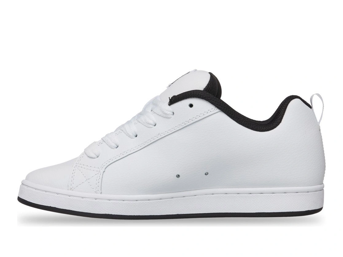 - DC Shoes Court Graffik White — klassische Herren-Skate-Sneaker in Weiß mit gepolstertem Schaft und Zunge, robuster Cupsole-Konstruktion und charakteristischem Profil für Alltag und Streetwear.