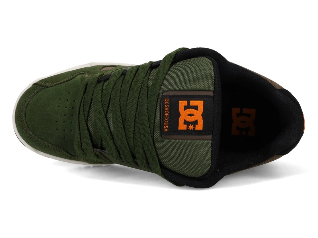 - DC Shoes Stag Olive — Herren-Skate-Sneaker in Oliv mit gepolstertem Komfort, robuster Cupsole-Konstruktion und charakteristischem Profil für Alltag und Streetwear.