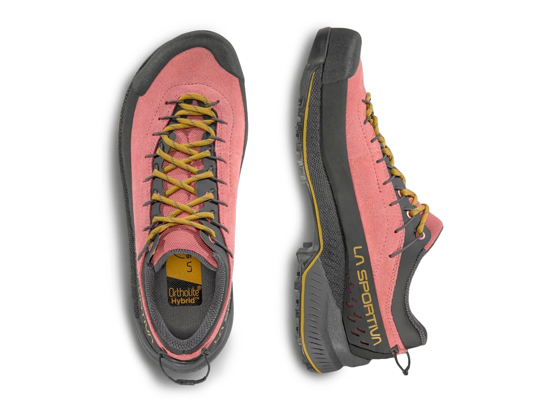 - La Sportiva TX4 Evo W Rosebay/Savana — Wildleder-Approach-Schuh mit Vibram MegaGrip, IBS, Ortholite 4 mm Einlegesohle, Kletterartiges Schnürsystem.