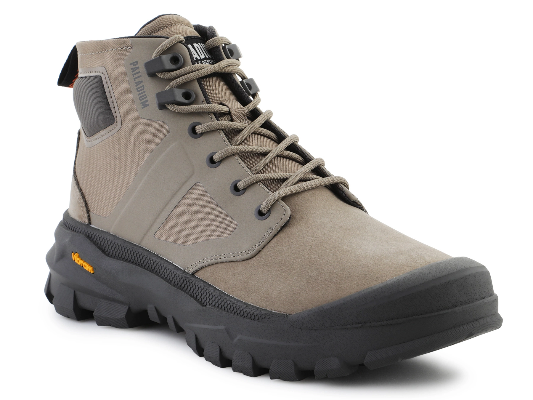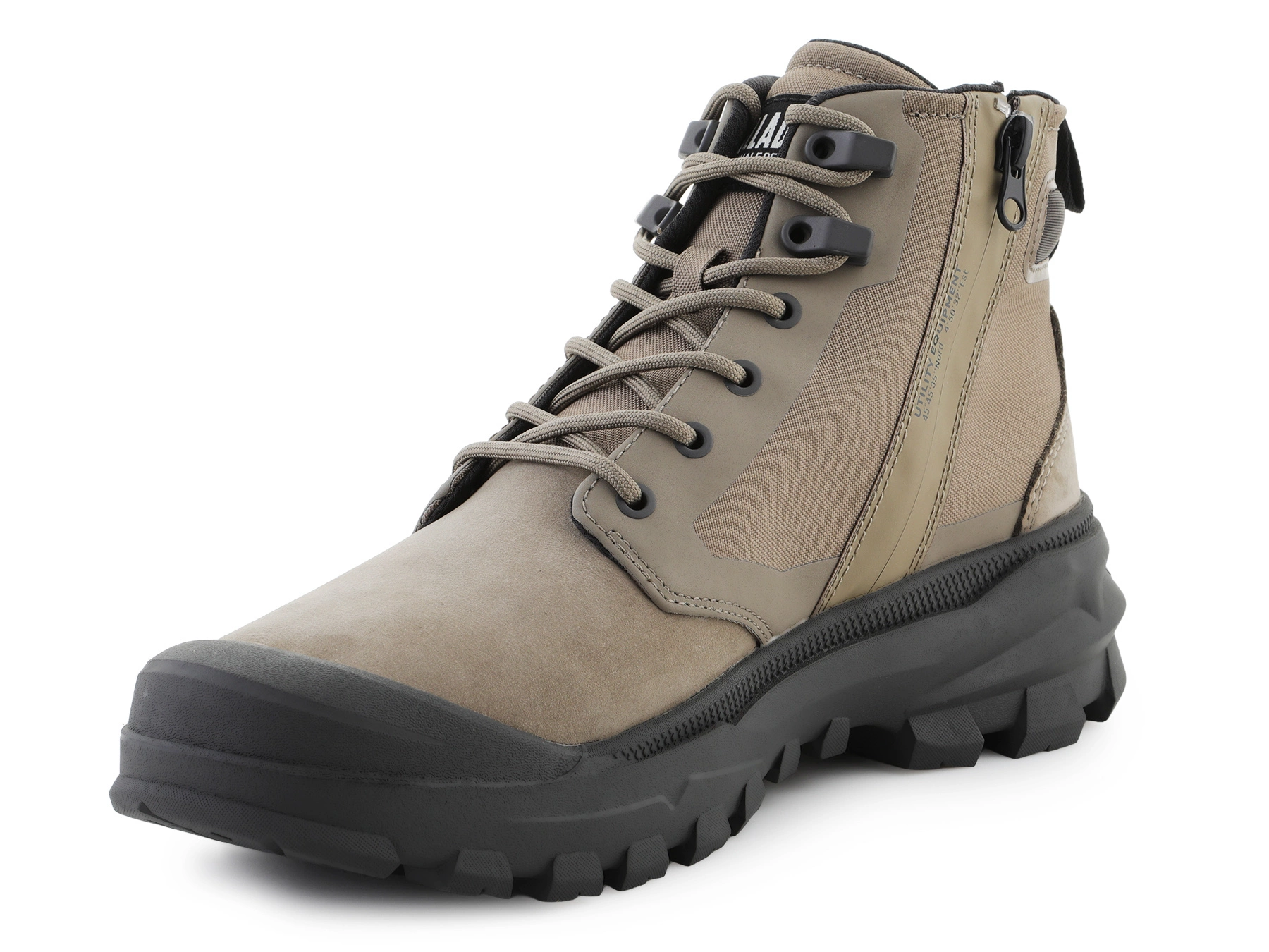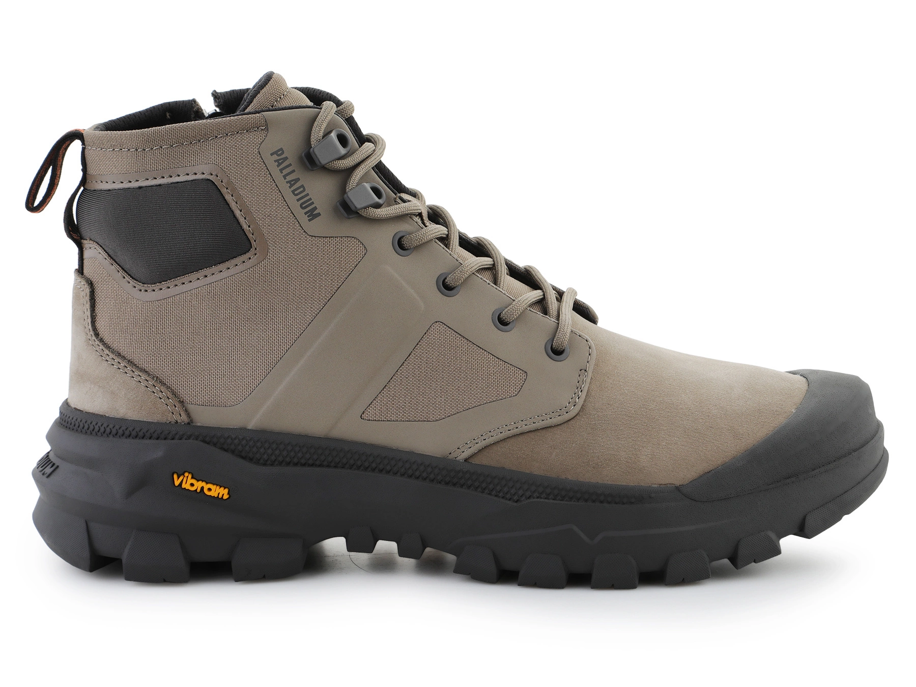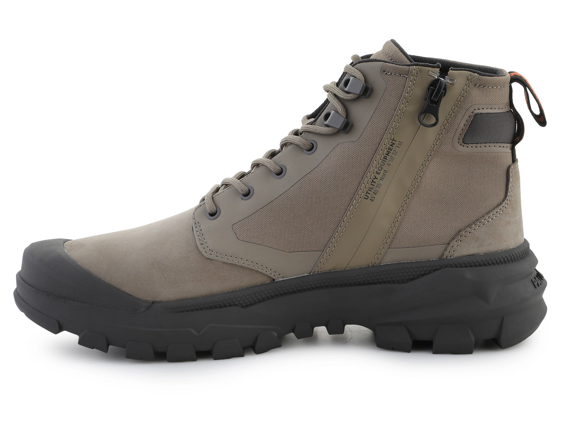 - Palladium PALLARIDER ZIP MIX Dusky Green — Off-Road / City Boot aus Nylon und Nubuk, mit Seitenreißverschluss, Vibram®-Sohle, Neopren-Knöchelweite, herausnehmbarer Einlegesohle.