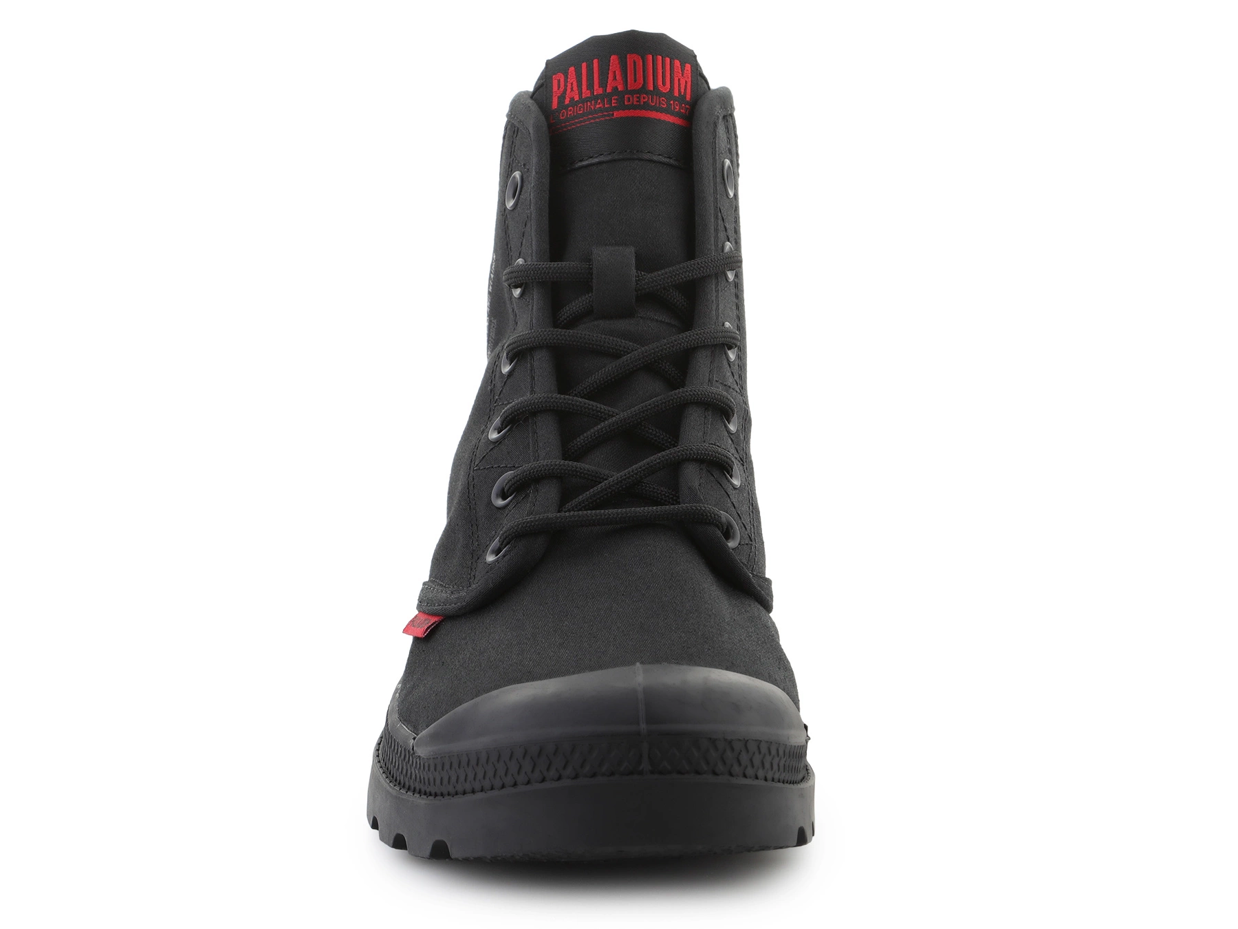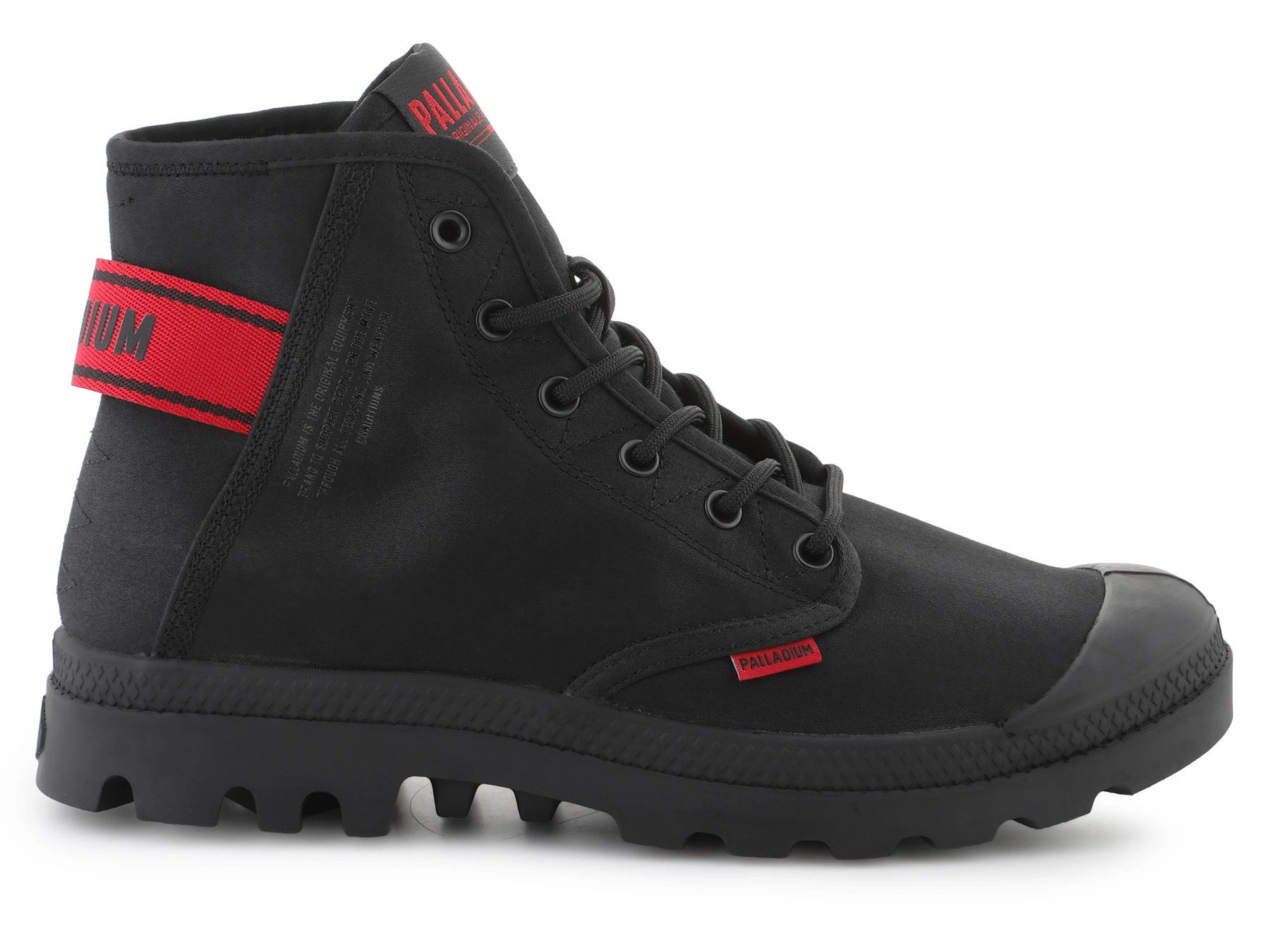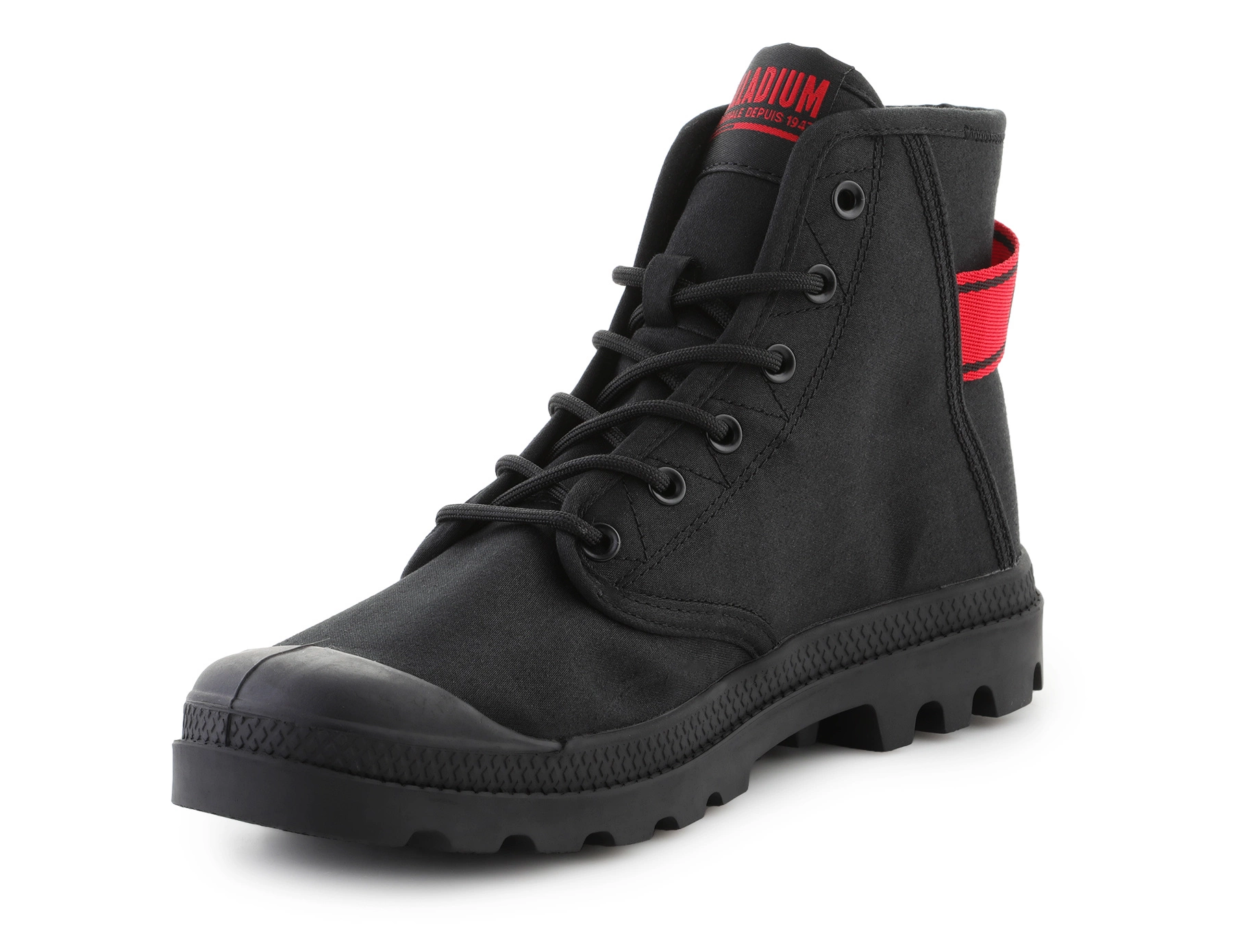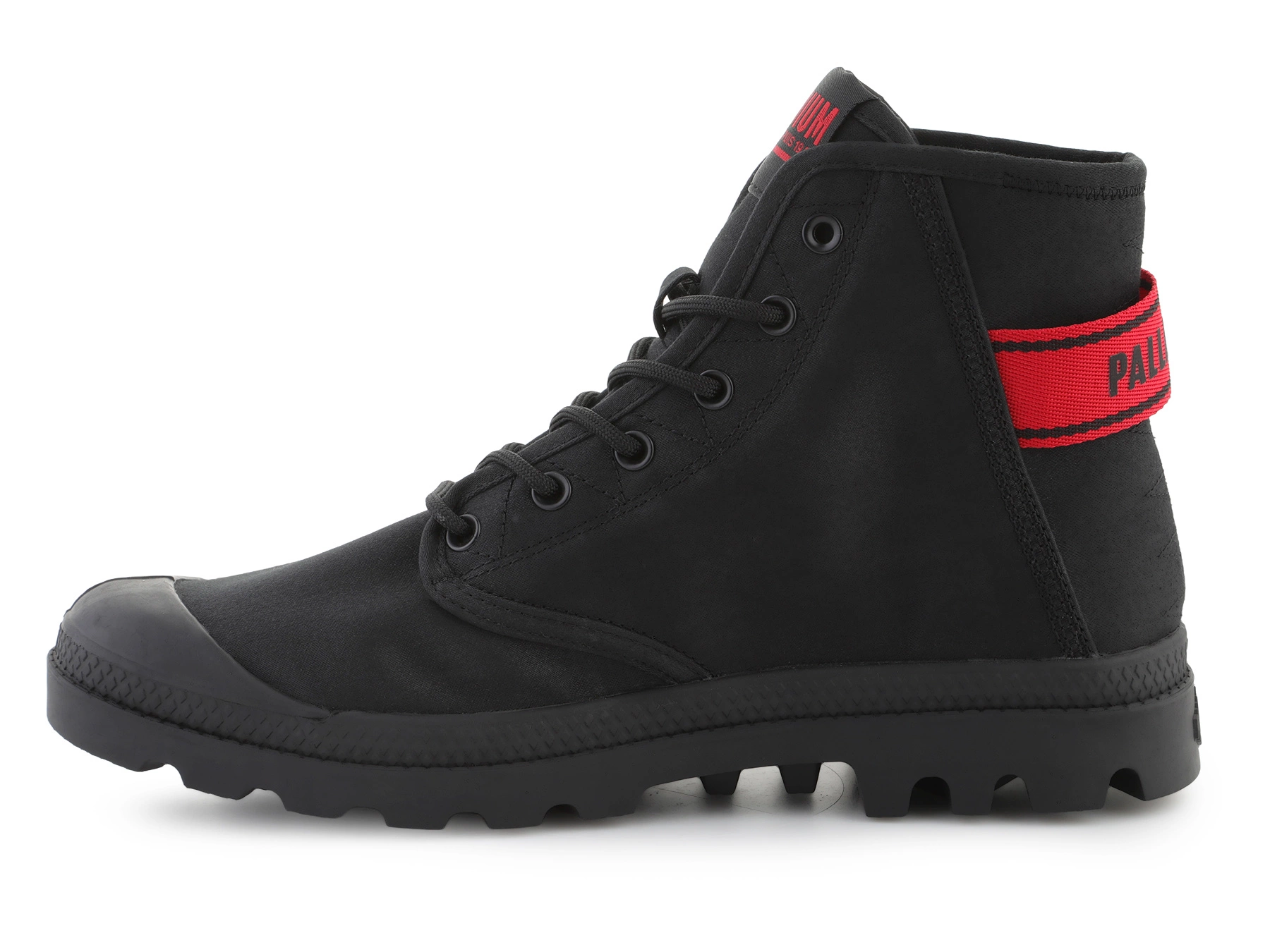 - Palladium PAMPA HI DARE II Schwarz — High-Top-Canvas-Boot mit klassischer Schnürung, 25 mm Gummisohle, inspiriertem Dare-Design.