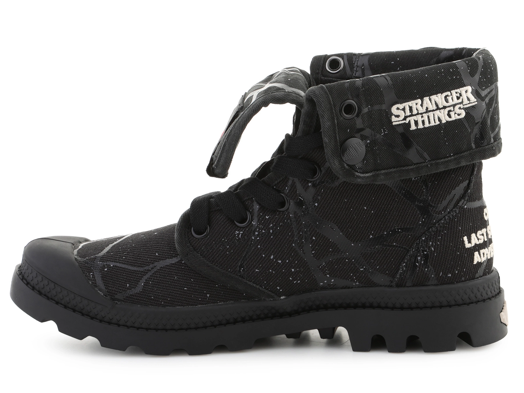 - Palladium Baggy Hopper Tunnels Black — hohe Canvas-Sneaker inspiriert von Stranger Things, stylisch und bequem für Alltag und Streetwear.