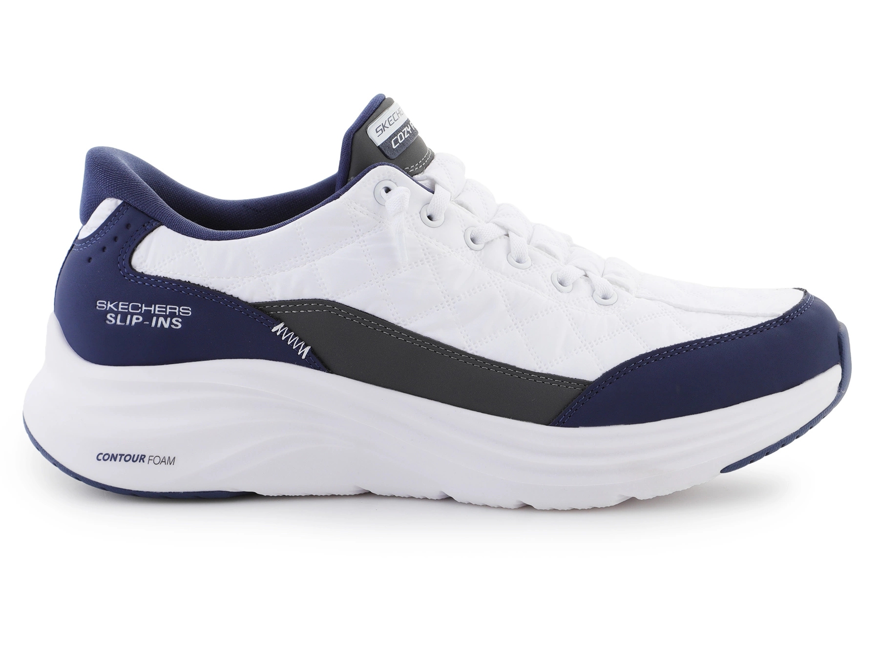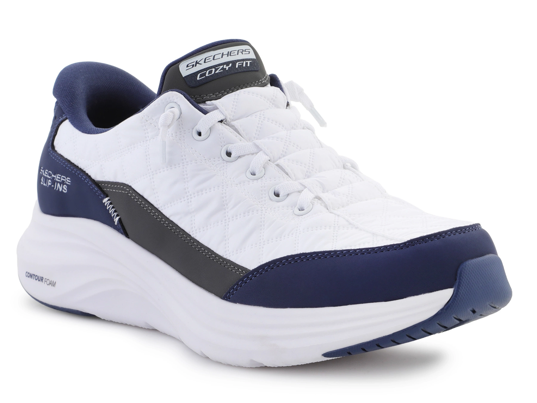 - Skechers Slip-ins: Contour Foam - Cozy Fit 232619-WNV White/Navy – Herren-Slip-On-Schuhe mit Slip-Ins® Technologie, Contour Fit® Einlegesohle und weichem Futter für maximalen Komfort.
