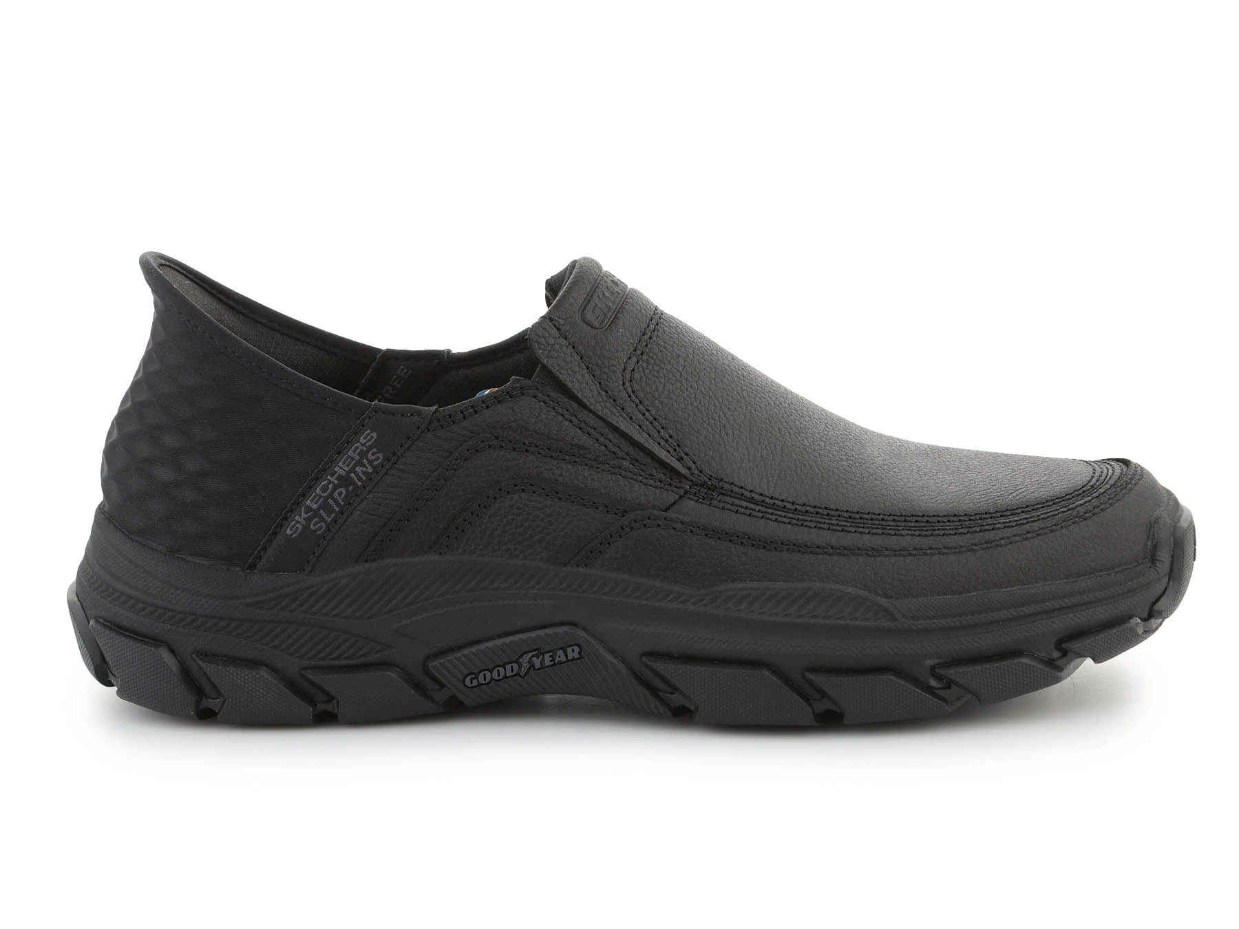 - Die Skechers Slip-Ins Respected - Elgin in Schwarz kombinieren Stil, Komfort und Funktionalität. Mit der innovativen Slip-Ins® Hands Free Technology lassen sie sich mühelos anziehen, während die Air-Cooled Memory Foam