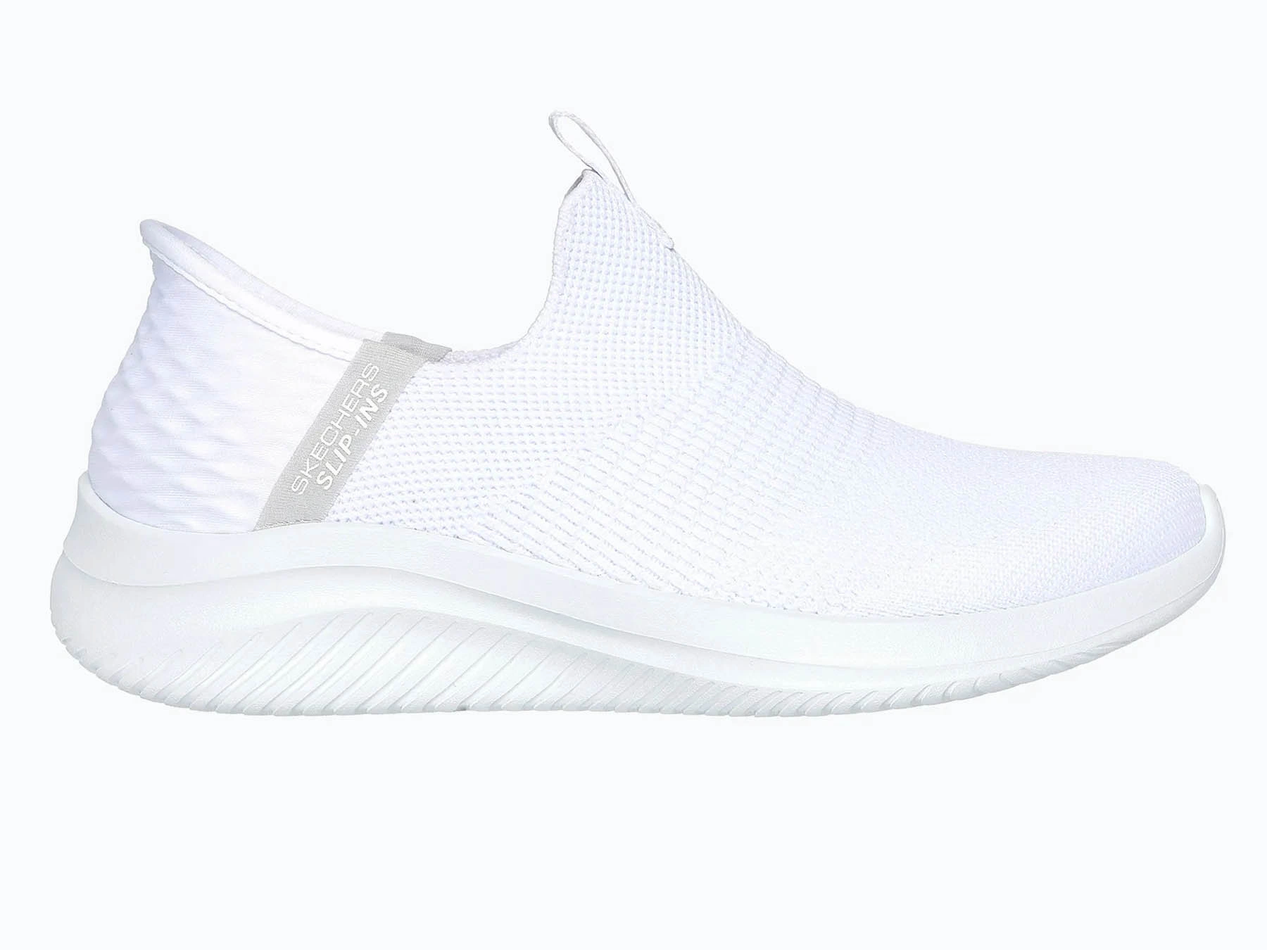 - Skechers Slip-Ins Ultra Flex 3.0 in Weiß – stylisch, bequem und ohne Bücken.